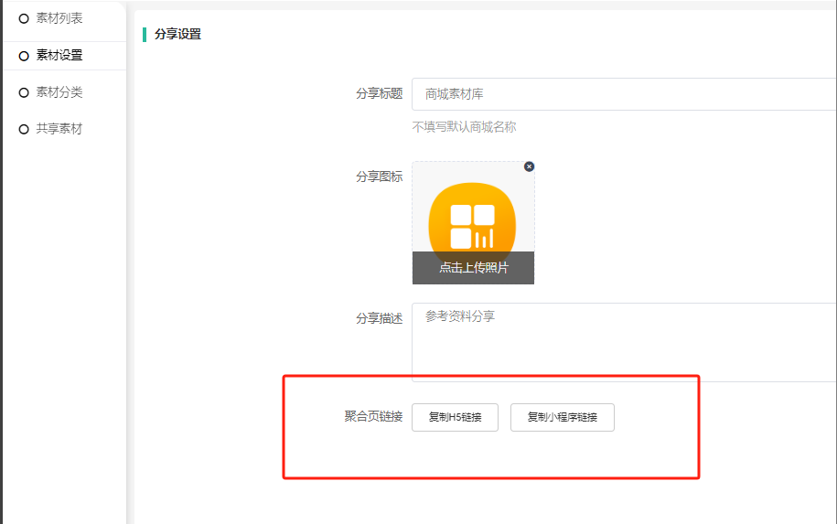 2、商城素材中心插件可以同步中台素材,同步的同时导入素材分发关联的商品。