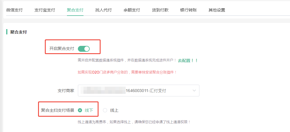 开户账户下来之后,需要先配置数据通系统,然后再到系统--支付方式--聚合支付--同步商户信息